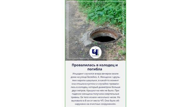 😱 Челябинка упала в открытый коллектор и утонула