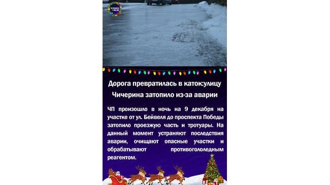 ⚡Дорога превратилась в каток:улицу Чичерина затопило из-за аварии