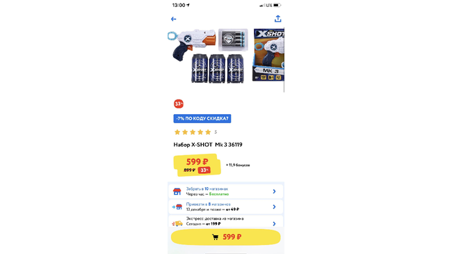 Не люблю магазин Детский мир, но иногда приходится покупать там товары. Недавно сделала заказ через интернет магазин, покупала бластеры для 3х детей, оказалось, что все 3 товара есть только в алмазе, ок, делаю заказ, его собрали, еду за заказом, а в магазине оказывается не весь заказ, 3его бластера нет. Самое интересное, что в интернете он есть и в большом количестве, в магазине он есть, а из заказа его вычеркнули. Либо сотрудники очень ленивые и им не захотелось собрать весь товар, или денег пожалели, так как цена его повысилась в 2 раза.