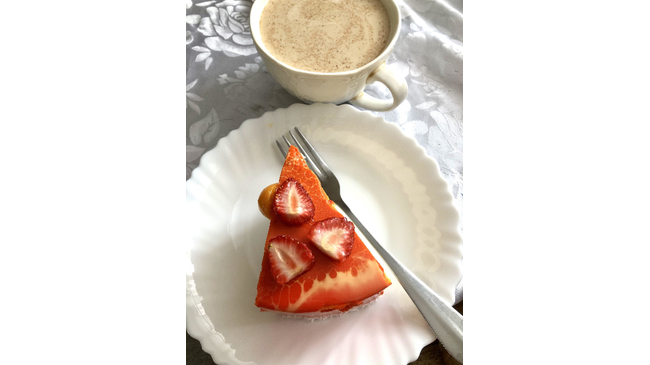Только банана-мамы была исключением. В этот раз ее не было, взяли на пробу пино-коладу. Начинка не успела разморозиться, ананас хрустел льдом, в целом показалось как-то невнятно, только у зеркальной глазури был сладковатый вкус.