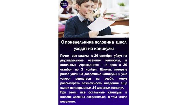 🎒С понедельника половина школ уходит на каникулы