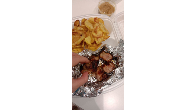 Шашлык сожгли, так же в описании к блюду нет пометки, что печень завернута в свиную грудинку, от которой при жарке остались одни угли, картофель нещадно пересолили.
