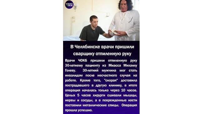 👨⚕В Челябинске врачи пришили сварщику отпиленную руку