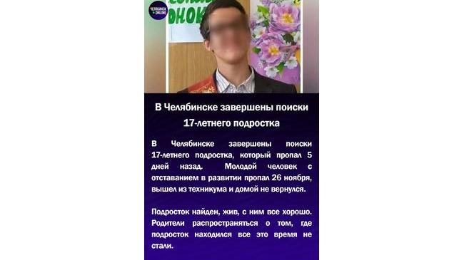 ⚡В Челябинске завершены поиски 17-летнего подростка