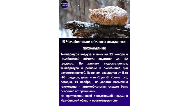 🌬В Челябинской области ожидается похолодание