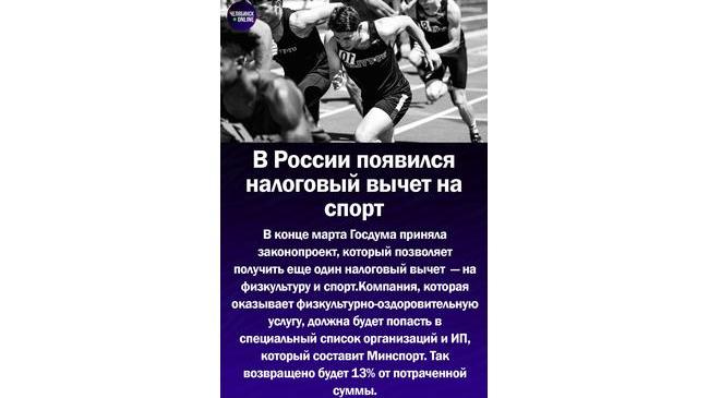 💸В России появится налоговый вычет на спорт