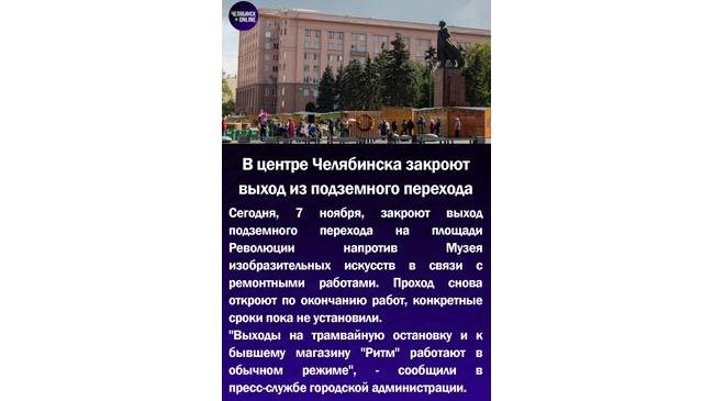 🚧В центре Челябинска закроют выход из подземного перехода