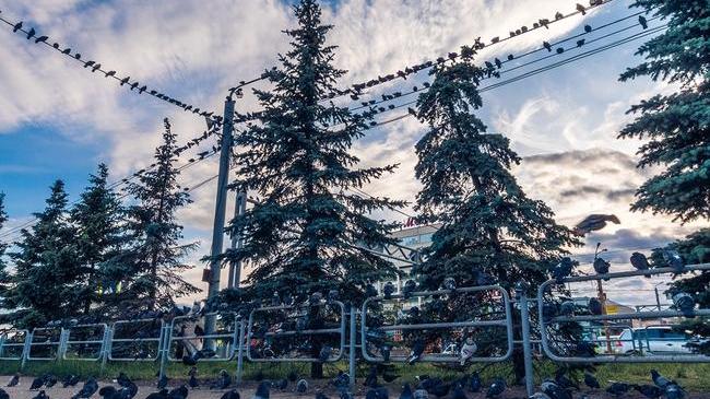 Они ждут женщину которая их кормит,один раз наблюдала эту картину,когда она шла по пешеходному переходу к ним,эта стая летела вокруг неё,довольно жуткая картина.Я даже не сразу поняла,что внутри стаи женщина 😊